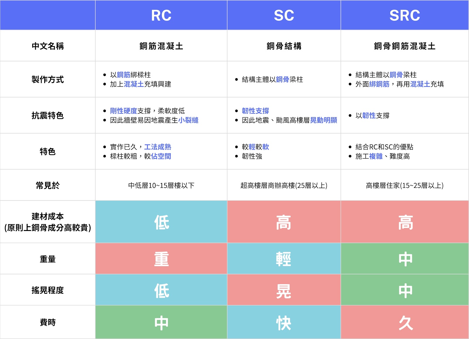 市面上常見的三種建築結構以 RC、SC、SRC 為主,影響到的層面包含耐震度、防火程度、穩定性、安全性,當然還有最顯而易見的 —價格。為了安全,我們也許願意多花錢保平安,但是多花的錢真的是必須的嗎?難道新房就非 SRC 不可?RC 和 SC 有這麼乏善可陳嗎?
