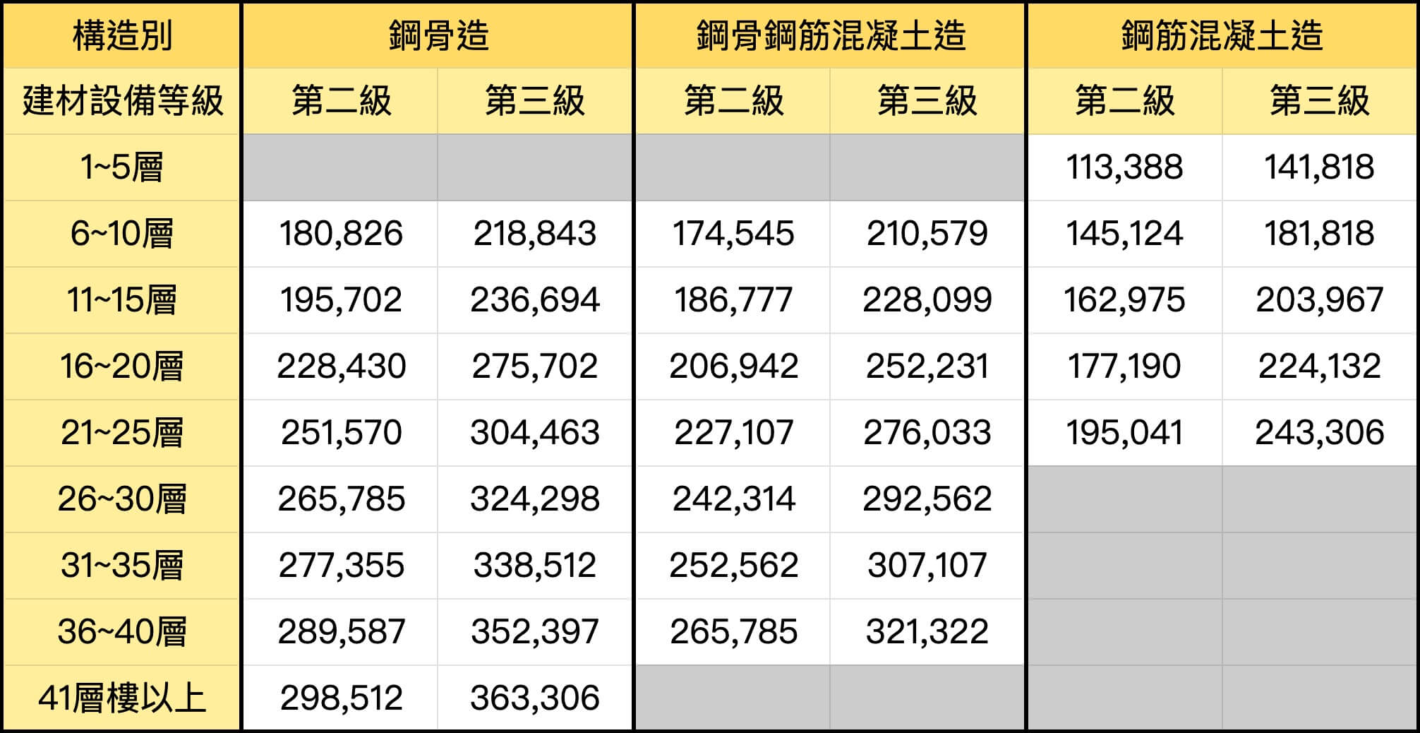 台北市建築物工程造價標準單價表(113年版本)